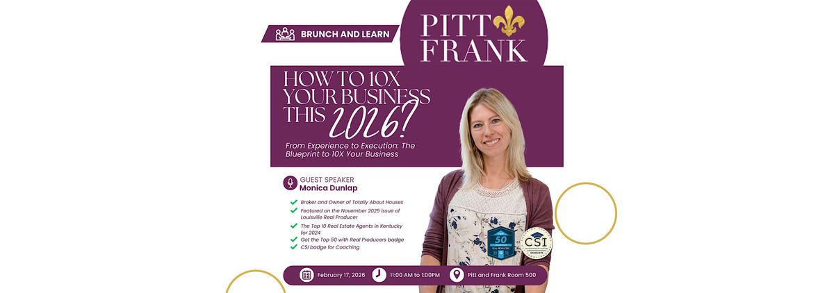 Join us for an inspiring and informative Brunch & Learn event hosted by Pitt & Frank, featuring special guest speaker Monica Dunlap!