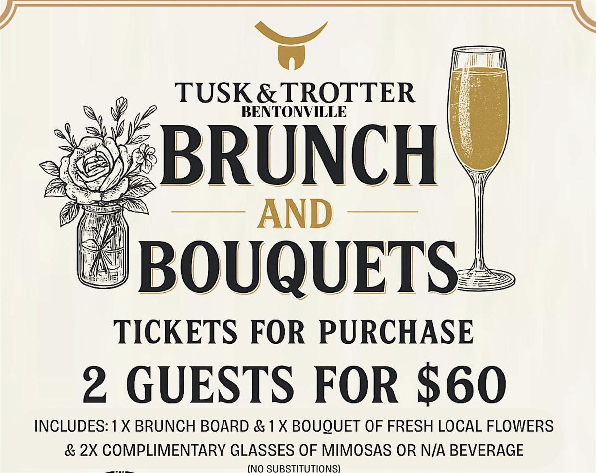 Tusk & Trotter invites you to a charming Sunday morning experience that blends farm-to-table flavors with the beauty of fresh blooms. Brunch & Bouquets is an intimate, ticketed event featuring a shared brunch board filled with seasonal favorites and two refreshing mimosas (or non-alcoholic beverages). Each pair of guests will also take home one handcrafted bouquets made with locally grown flowers from farmer Paul, celebrating the best of Northwest Arkansas farms and flavors.