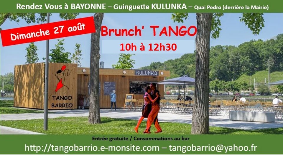 L'été nous invite à danser hors les murs! alors rdv à la guinguette Kulunka pour un brunch Tango de 10h à 12h30. Entrée Gratuite. Consommations directement au bar. Annulé en cas de pluie