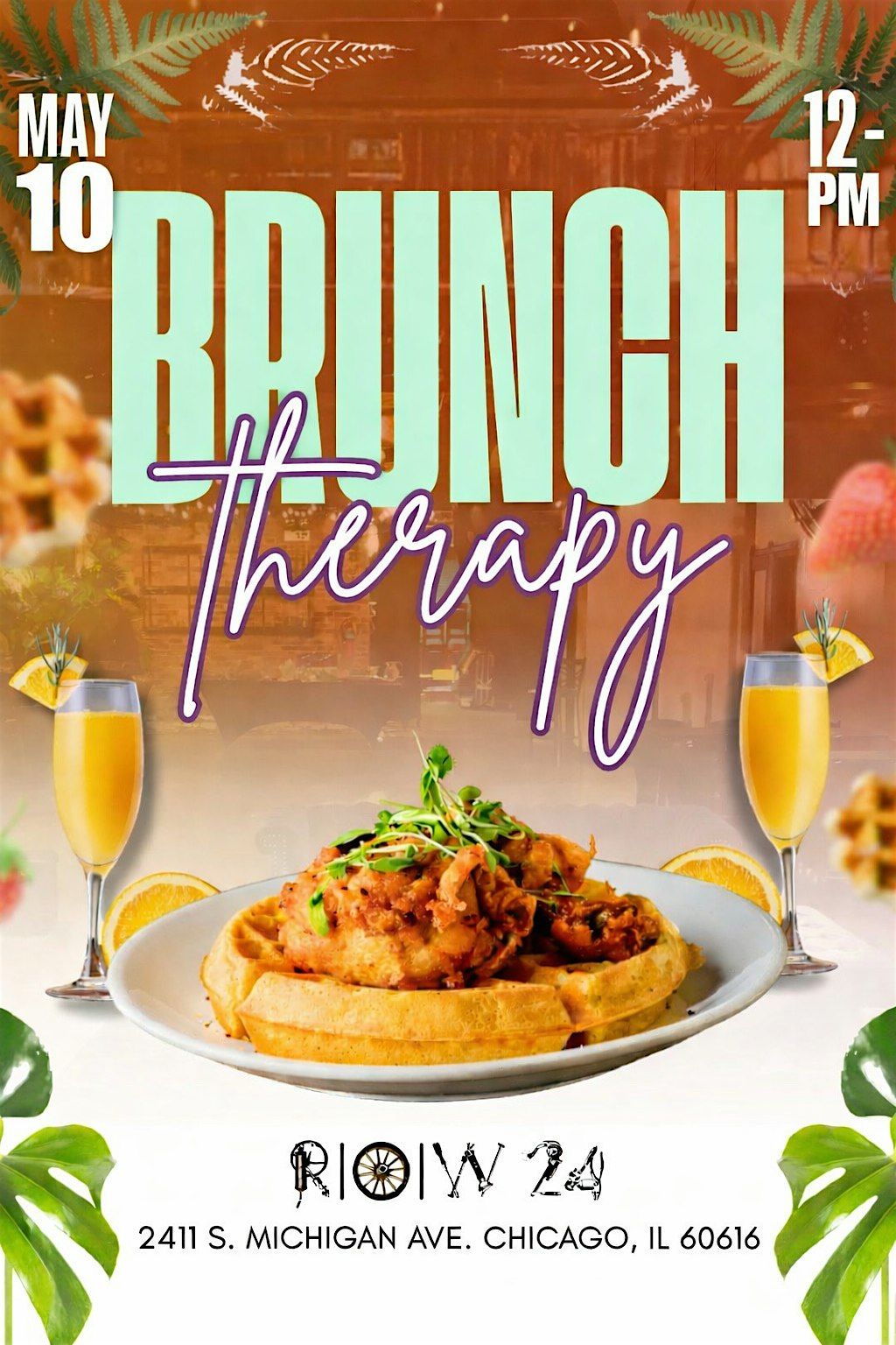Join us for Brunch Therapy at Row 24 Chicago on May 10th, 2026 at 12:00 PM (Central Time). It's the perfect way to relax, catch up with friends, and enjoy some delicious food in a laid-back atmosphere. Whether you're looking to unwind or just craving a tasty brunch, this is the spot for you. Come hungry and ready for good vibes! Brunch is unlimited.