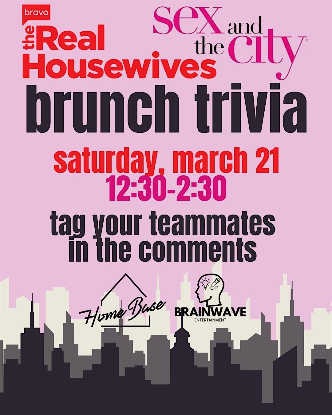 We're hosting a themed trivia event at HomeBase during brunch service, featuring the catty ladies of "The Real Housewives" and the stylish squad from "Sex and the City"!