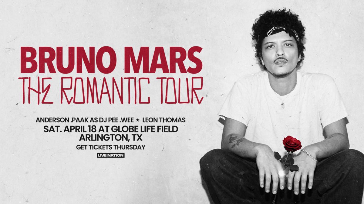 Bruno Mars at Globe Life Field✨ Enter a world of endless possibilities at Bruno Mars Arlington Tickets, where every moment tells a story! 🏛️ The stunning Globe Life Field in vibrant Arlington, TX transforms into a realm of wonder on April 19th, 2026 at 07:30 PM. 🌟 They have crafted an experience that goes beyond the ordinary, combining elements of surprise, delight, and pure entertainment. Every detail has been thoughtfully considered to ensure your journey with us is nothing short of extraordinary. 🎯 Join fellow adventure seekers and memory makers in this celebration of imagination and innovation. 💫 Book now at 230.01 EUR. 🎊 Reserve your spot today and be part of something truly special!
