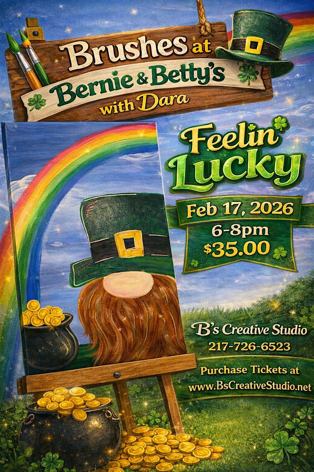 Come join Dara from B's Creative Studio at Bernie & Bettys as she guides you in this fun painting. Grab a friend or two or come alone. This is a fun and laid back class.