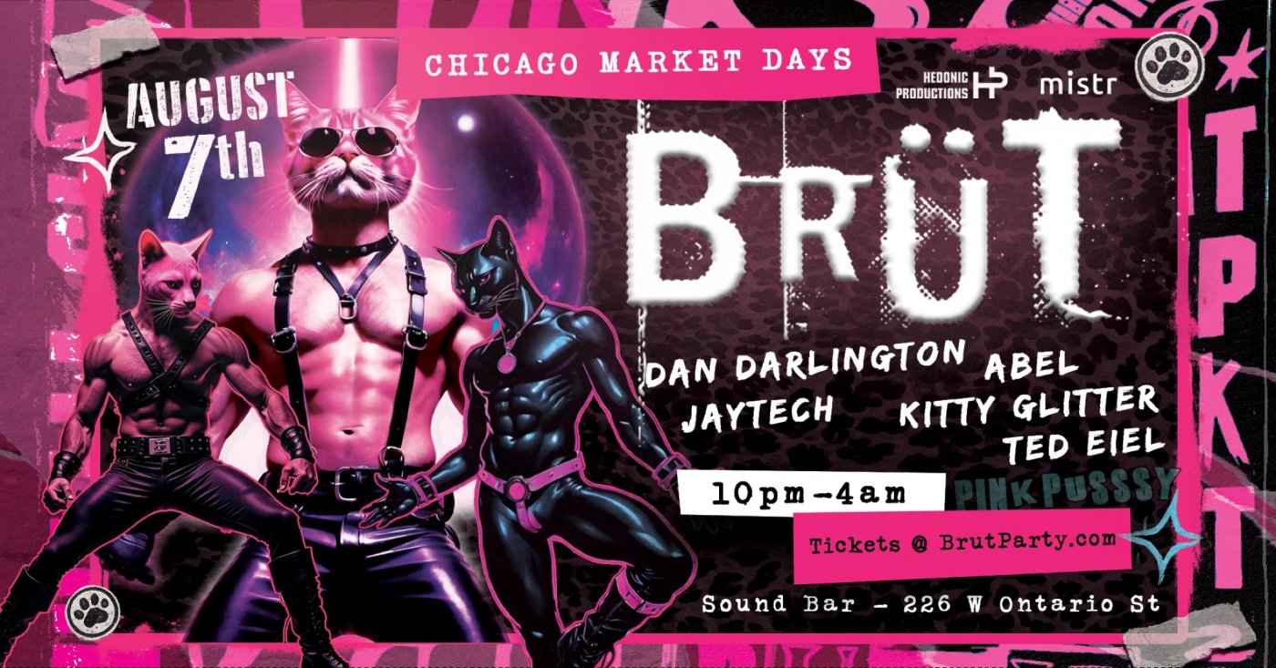 The most sought-after party on Friday night during Market Days Chicago is BACK. BRÜT returns with PINK PUSSSY RAVE—and as the ruling LGBTQ+ underground force in Chicago, we are moving to a space twice as BIG this year!. We have taken over all 3 ROOMS at Sound Bar, Chicago’s most iconic and recognized nightlife venue. Known for one of the city’s most incredible sound systems, two main dance floors, a dedicated VIP room, and a prime location built to shake the city.