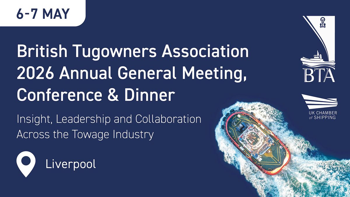 The British Tugowners Association (The BTA) invites its members, and all those with an interest in towage, to Liverpool on 6–7 May for its 2026 AGM, Conference and Dinner — a two‑day gathering that brings the towage community together to connect, share expertise and engage with leaders shaping the future of UK towage.