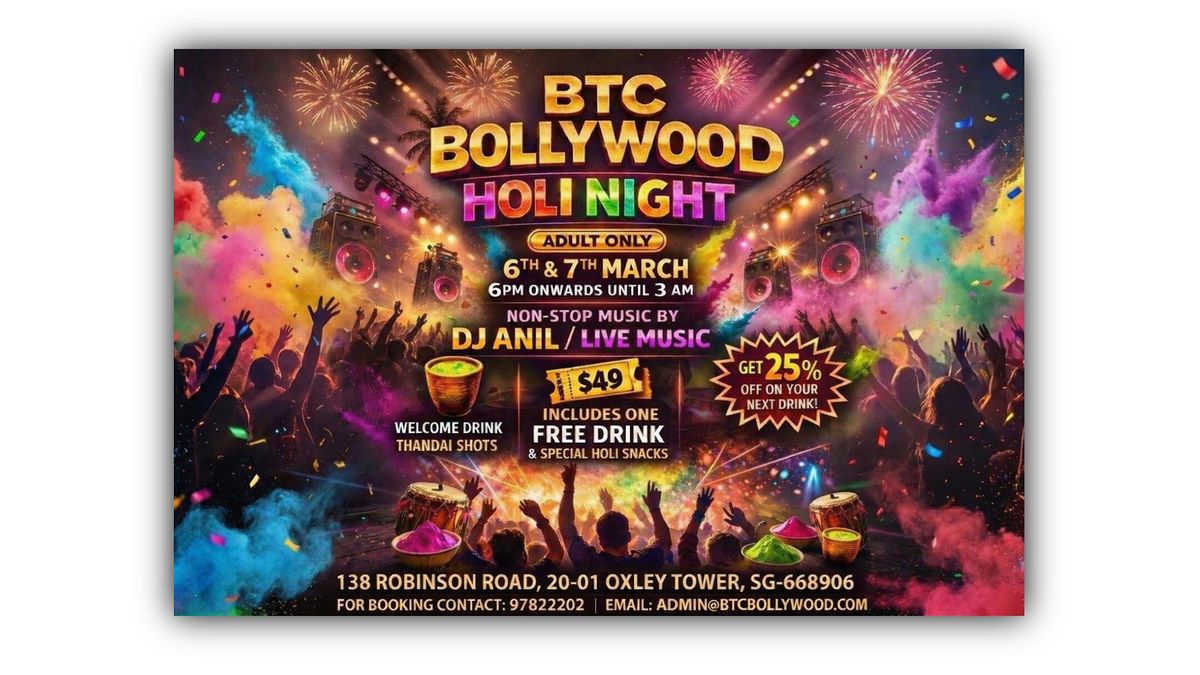 Join us on March 6th & 7th at BTCBollywood Club for an unforgettable Holi celebration!About this Event