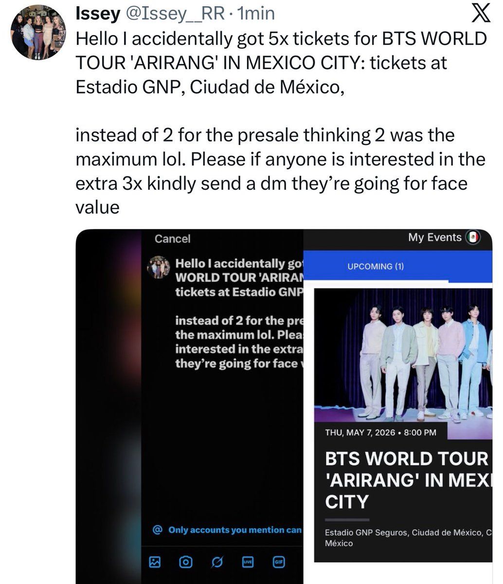 BTS at Estadio GNP Seguros🎉 Welcome to BTS Mexico City Tickets, where dreams come alive and possibilities are endless! 🏛️ Join us at Estadio GNP Seguros in the heart of Ciudad de México, MX for an event that defies expectations. 📅 On May 10th, 2026 at 07:00 PM, be part of something truly extraordinary as we bring together innovation, entertainment, and pure magic. ✨ Every aspect has been carefully designed to ensure an unforgettable experience for all our guests. Whether you're seeking adventure, inspiration, or simply a break from the ordinary, this event promises to deliver beyond your wildest dreams. ✨ With tickets available at 749.22 EUR, your journey awaits. 🎊 Prepare for a journey into the extraordinary!