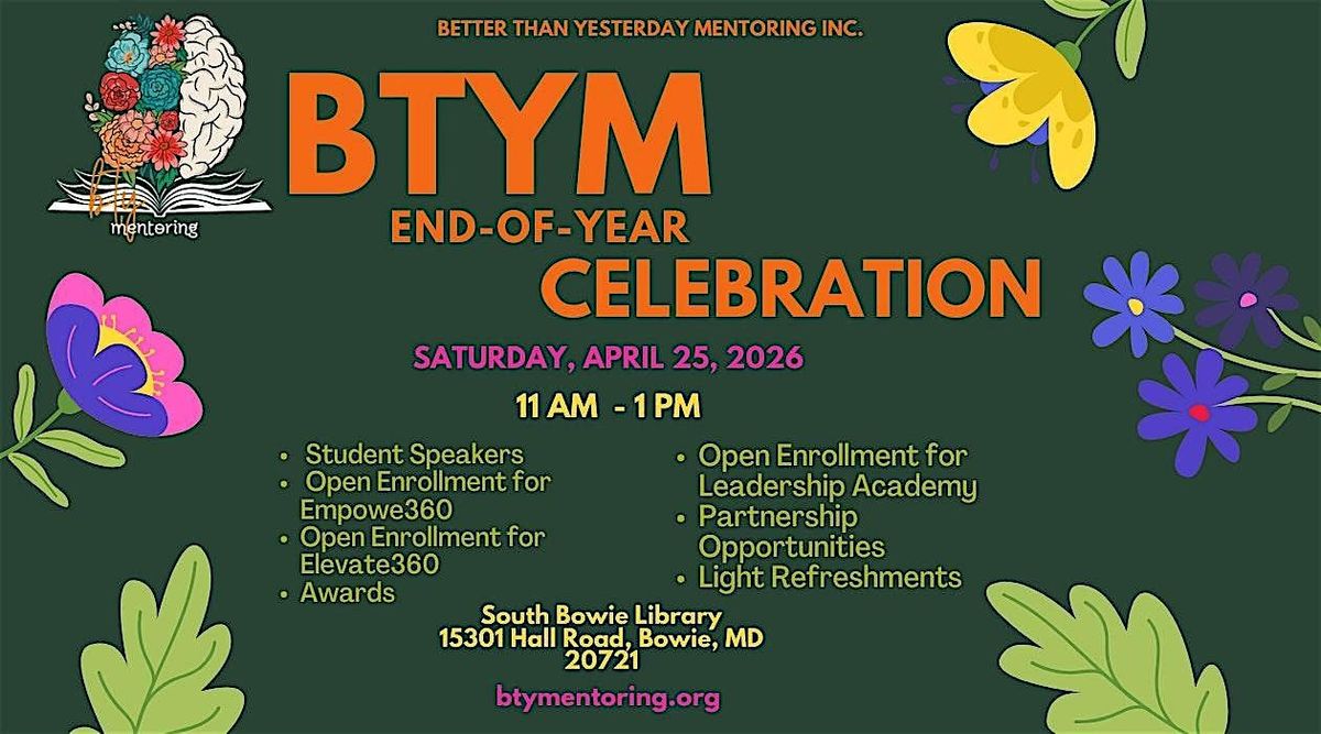 Join Better Than Yesterday Mentoring Inc. for our Empower360 End‑of‑Year Celebration as we honor the transformation, dedication, and personal growth of our very first Empower360 cohort. This special event will feature eight student speakers, awards, reflections, and a look back at the powerful work our students have completed throughout the year.
