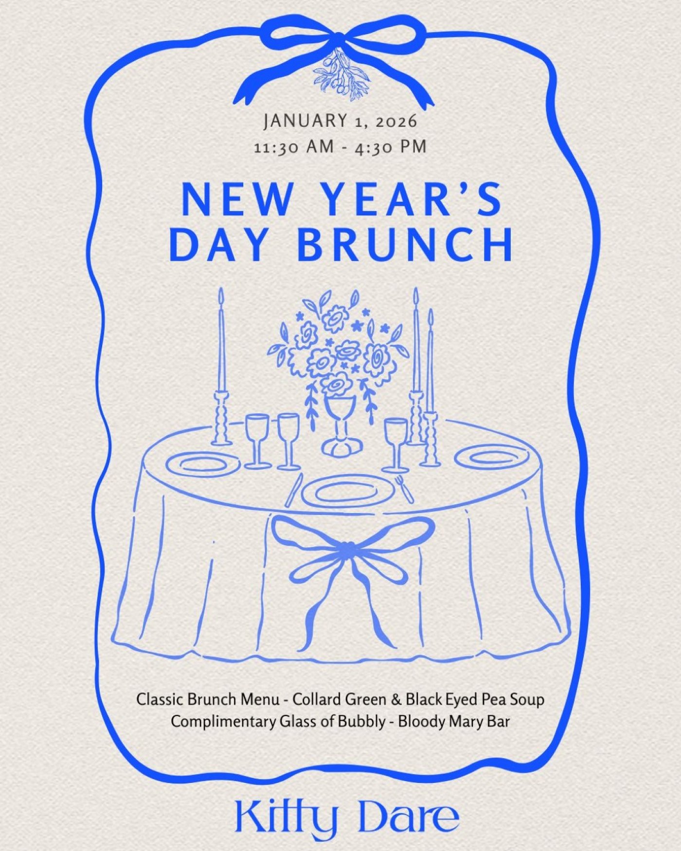 Head to Kitty Dare for a special New Year’s Day brunch on Thursday, January 1, 2026. From 11:30 a.m. to 4:30 p.m., the Inman Park favorite sets the tone for the year ahead with a complimentary glass of champagne to raise a toast to 2026, a Mediterranean-inspired brunch menu, and a seasonal nod to Southern tradition: Collard Green & Black-Eyed Pea Soup for a bit of good luck. Brunch guests can also build their own Bloody Mary using Sister’s Sauce Bloody Mary Mix, with five base styles to choose from — House Bloody, Bourbon Bloody, Red Snapper, Bloody Maria, and Virgin Mary — and garnishes that range from shrimp and pickled onion to celery and sweet peppers. Kitty Dare will be closed for dinner on New Year’s Day, keeping the focus on daytime gathering and leaving the evening open for a well-earned reset. Kitty Dare is located at 1029 Edgewood Ave NE, Atlanta, GA 30307. For more information or to make a reservation, visit www.kittydare.com. Stay connected on Instagram at @kittydareatl and on Facebook at @kittydare.