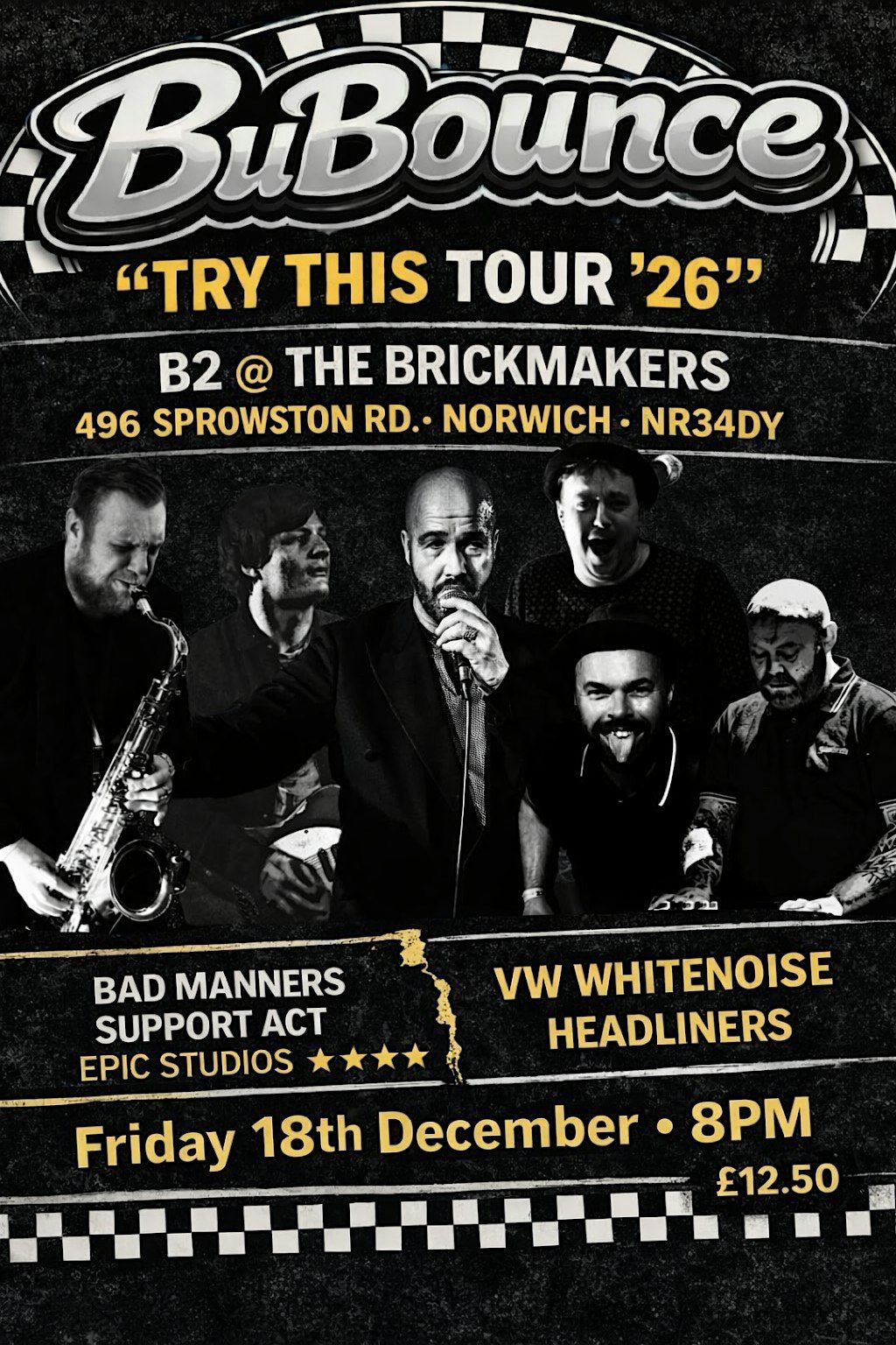 BuBounce are a high-energy ska band, best known for supporting Bad Manners at Epic Studios Christmas shows for the past five years.