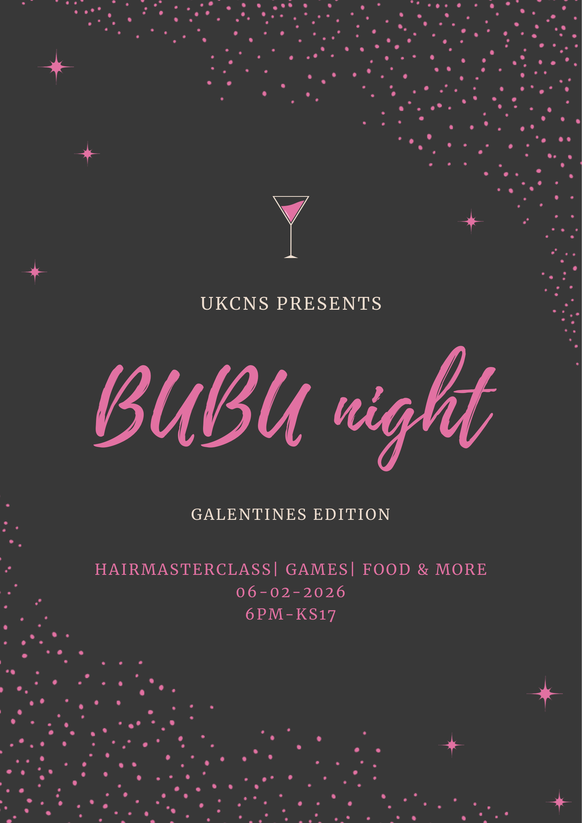 Love is in the air and this time, it’s all about the girls! 💕Join us for an unforgettable Galentine’s Bubu Girls’ Night, a cosy and fun-filled evening celebrating friendship, self-love, and good vibes.Come dressed in your cutest bubu and enjoy:✨ Fun games & activities✨ A hair masterclass✨ Delicious food✨ Good music & great vibes