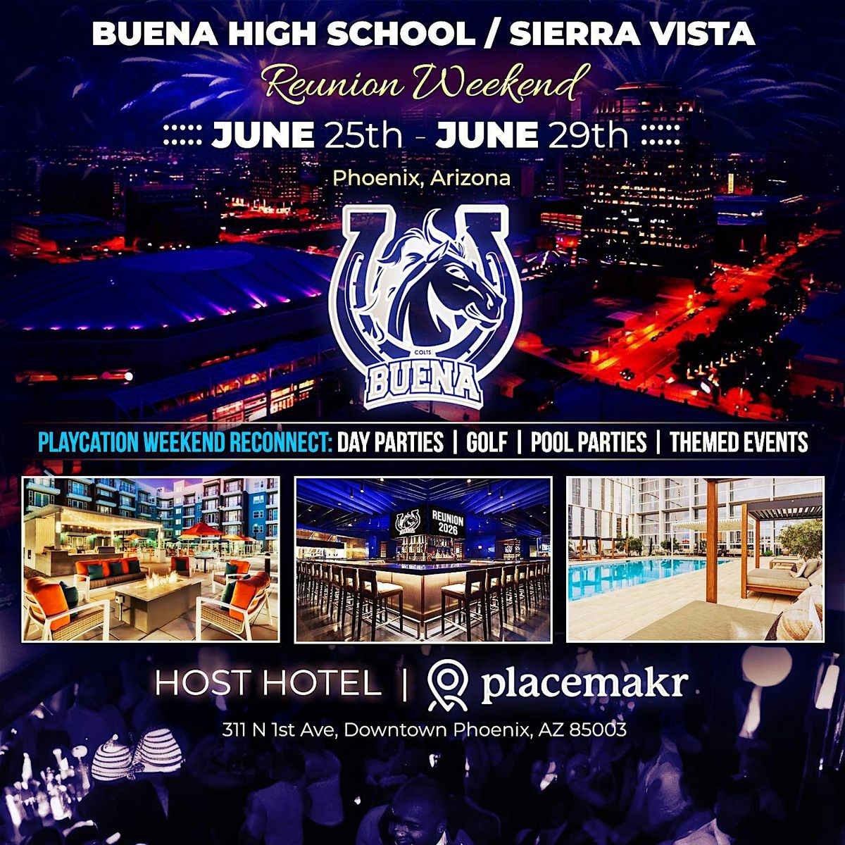 Reconnect & reunite with all of your Buena High School & Sierra Vista friends for one eventful weekend in Phoenix AZ! We've laid out a full weekend of events for you. All of the events are a la carte, so you can choose to go to all or none... It's your choice. Please RSVP so that we can get a solid head count!