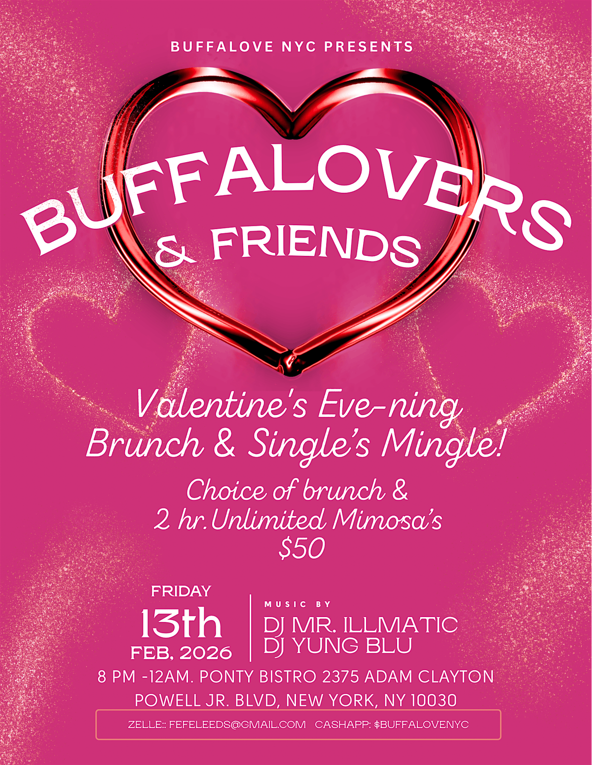 Come vibe, brunch, mix, and mingle with the Buffalove community. Whether you’re single, taken, or complicated, this night is for you!About this Event