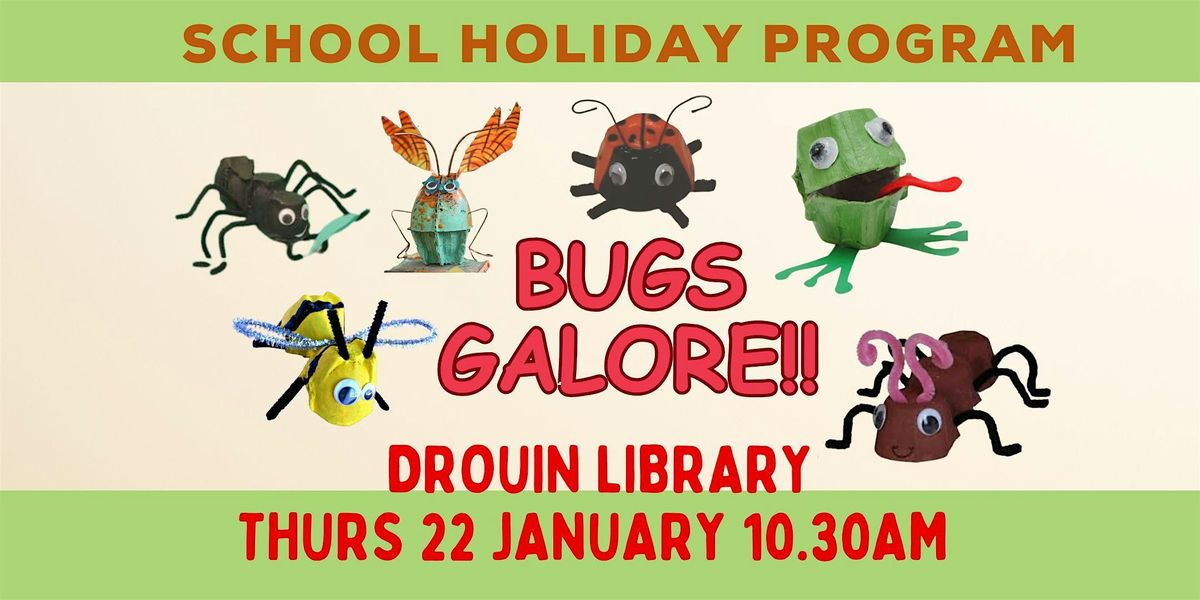 Join us at the Drouin Libraryfor an eggbox craft all about bugs. Don't miss out on this fun holiday event where we paint, decorate and create a variety of delightful little cardboard critters. See you there!
