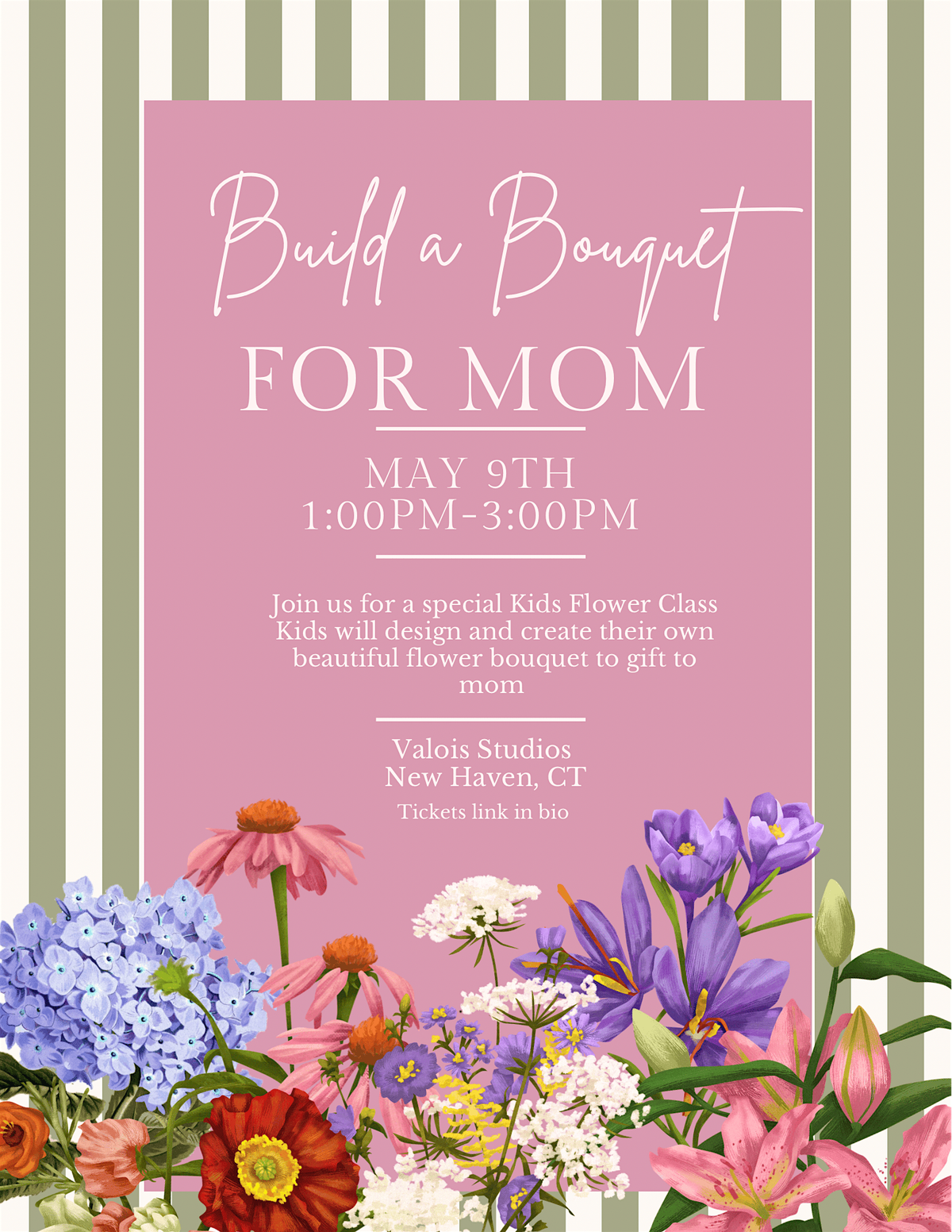 Join us in person to create a beautiful, custom bouquet that’ll make Mom smile big time! Class is for kids, moms are welcomed!About this Event