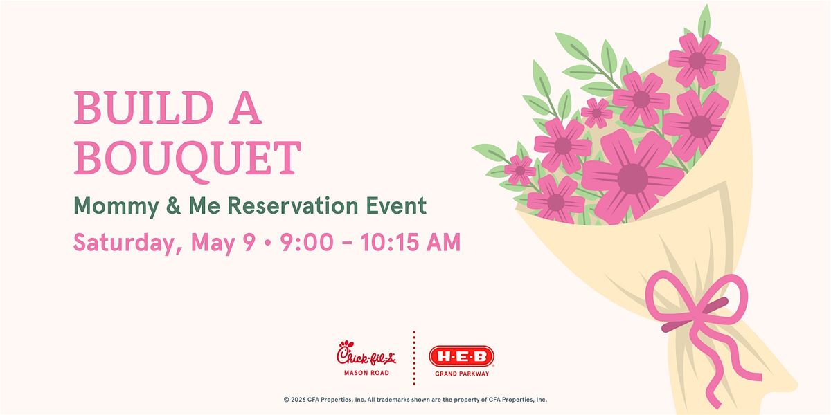 Mothers will enjoy a coffee bar and create a mini flower bouquet made of flowers provided by H-E-B. Children will create a keepsake craft to gift to their mother. Guests will enjoy photo ops, plus a special visit from the Chick-fil-A Cow.
