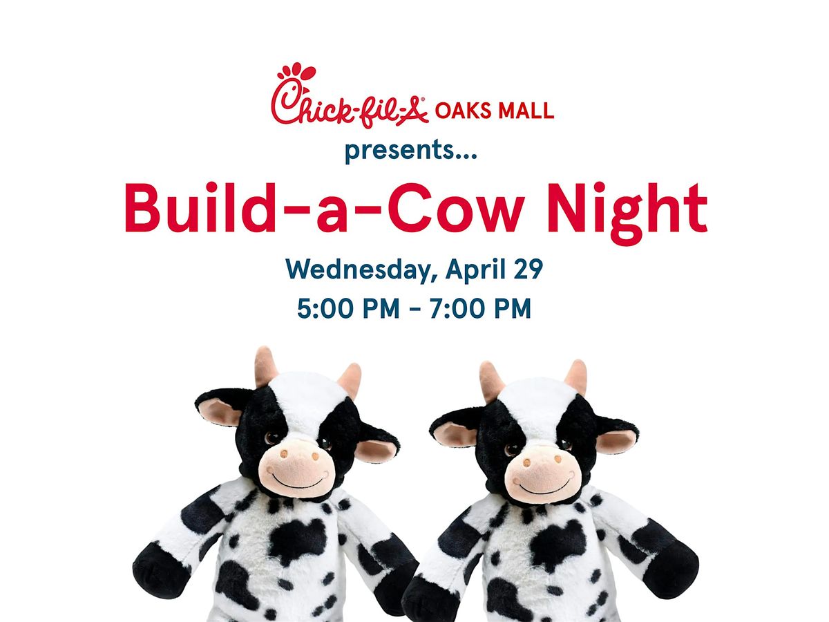 Join us for a fun-filled evening where you can build your own cow plushie! Tickets include one 10' Plush Cow that you “stuff” yourself, one cow-sized shirt, a birth certificate, an insertable heart for your cow, an Ice Dream® cup or cone, and a meet and greet with the Chick-fil-A Cow!
