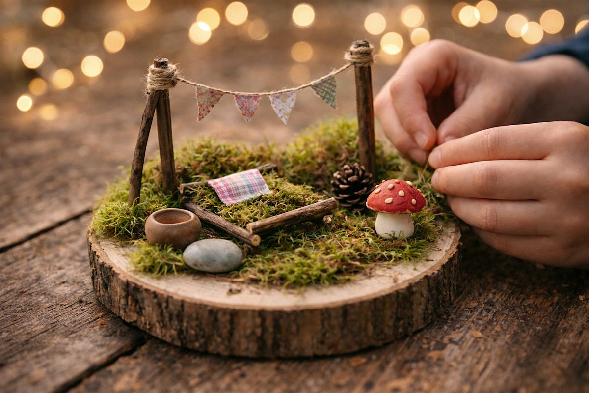 In this nature-inspired workshop, children become Woodland Home Builders, creating a tiny home on a wooden log slice where their magical creature could rest or leave a message.
