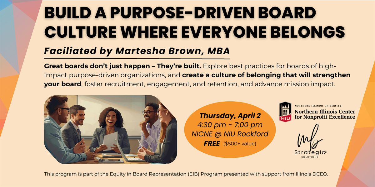 Details: Facilitated by Martesha Brown, MBA, this program is part of a series** to foster equity and belonging in the nonprofit sector by both supporting organizations in strengthening and growing their boards of directors and growing local capacity for board leadership and service.