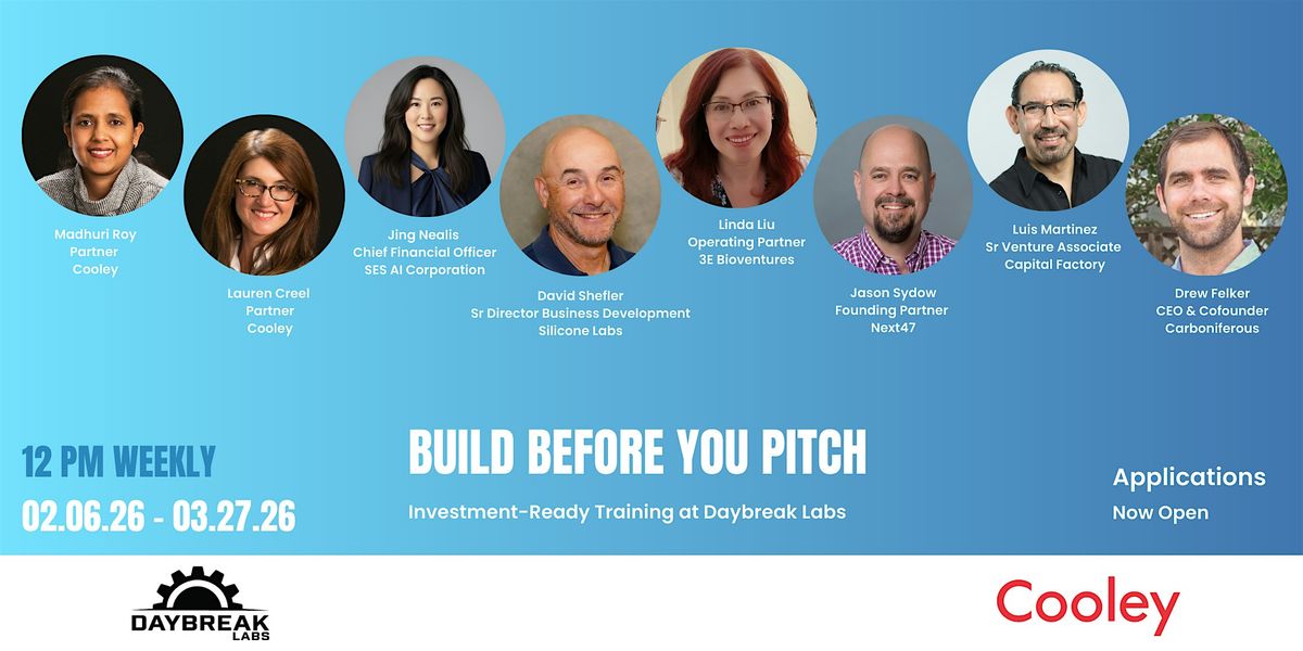 Led by expert facilitators—including Cooley LLP attorneys, industry CFOs, proven entrepreneurs, and active investors—this program serves 25 carefully selected founders in deep tech, climate tech, and life sciences. Over 8 consecutive Fridays, participants build real company foundations through hands-on workshops, pre-work assignments, and accountability-driven deliverables.