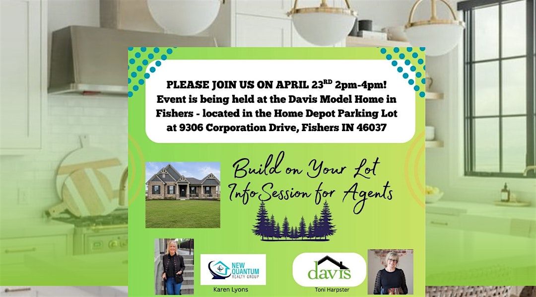 Sponsored by REALTOR® Karen Lyons of New Quantum Realty Group in collaboration with On-Your-Lot Sales Specialist Toni Harpster of Davis Homes- Indianapolis. Refreshments provided!~ Come Tour this beautiful Elmstead Model built by Davis Homes.