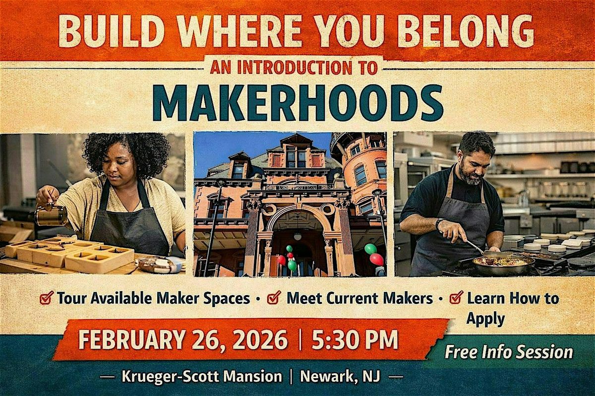 Makerhoods, a thriving live/work community inthe heart of Newark, NJ invites local entrepreneurs, artisans, and creatives to an in-person information session at the historic Krueger-Scott Mansion in Newark.