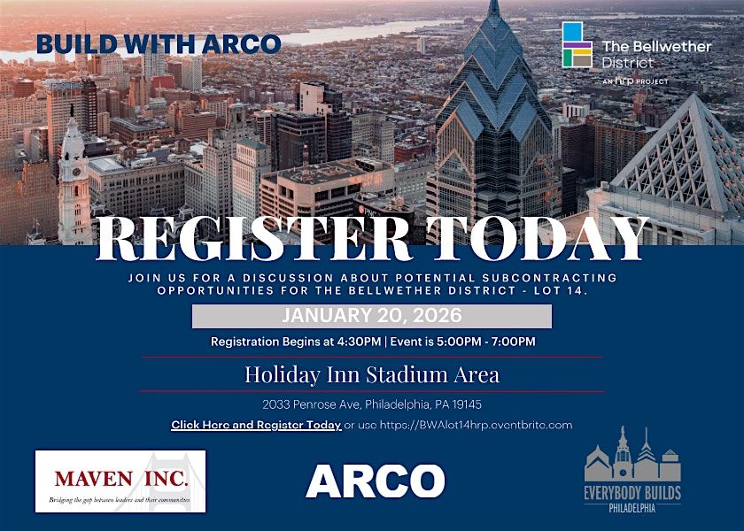 Join us in person for an exciting event where creativity meets construction! Collaborate with the awesome teams at ARCO and HRP as we bring Lot 14 in the Bellwether District to life. It's your chance to be part of something cool and get hands-on experience. Don't miss out on this unique opportunity to connect and build together!
