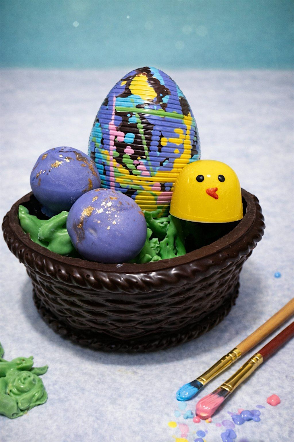 - Paint and decorate a dark chocolate Easter basket