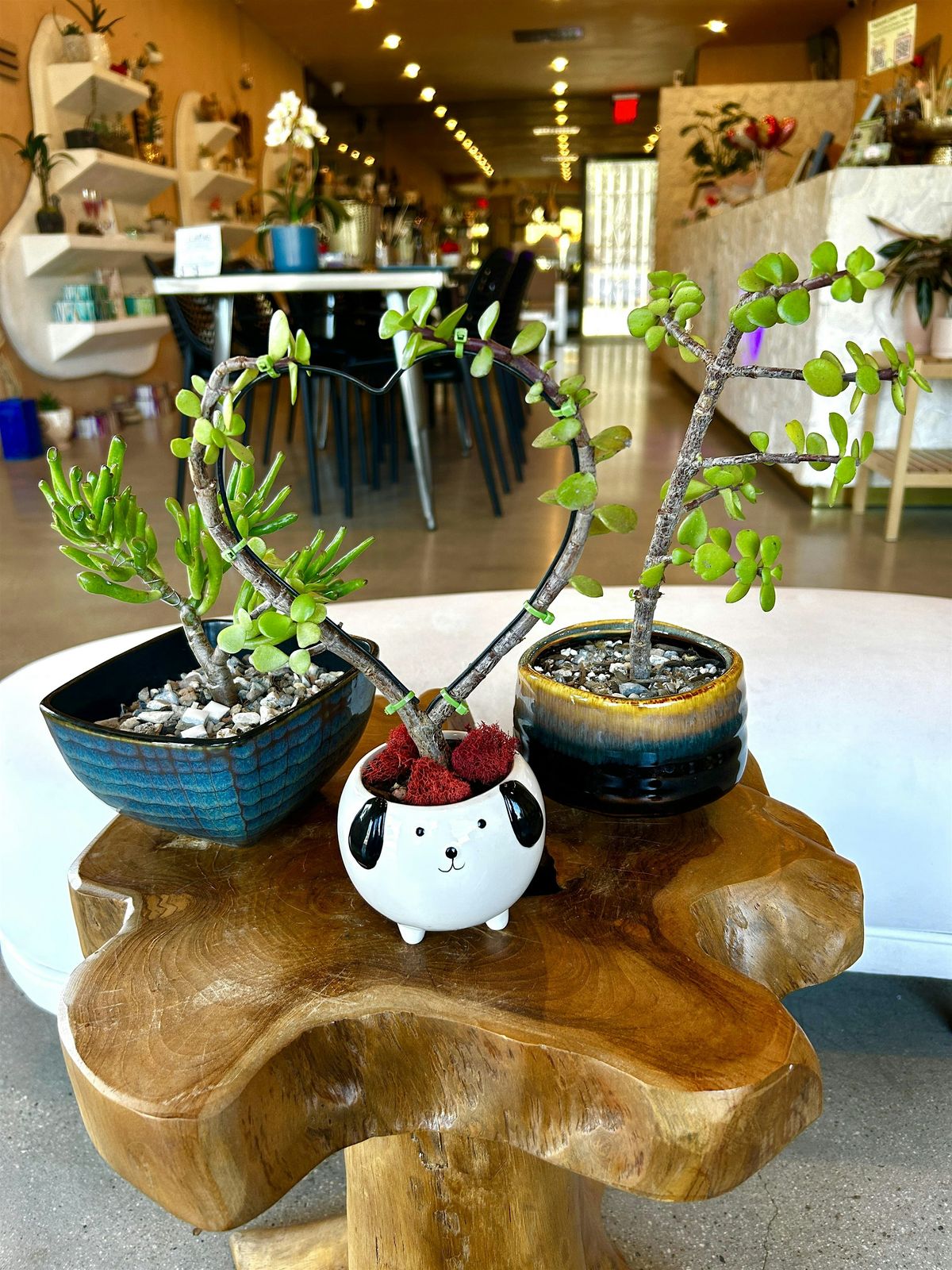 Find your moment of zen in our beginner-friendly succculent bonsai workshop! In this class, our expert staff will guide you through picking a hand-cultivated elephant bush or jade succulent, choosing a stylish planter, and learning how to plant and shape it into a magnificent mini bonsai. You can add decorations like pretty rocks, cystals, moss and more to complete your creation. Whether you're just starting your collection or already a seasoned succulent expert, this planting workshop in LA is perfect for people of all ages and abilities. Easy care instructions are also provided so you can keep your new plant babies happy and healthy!