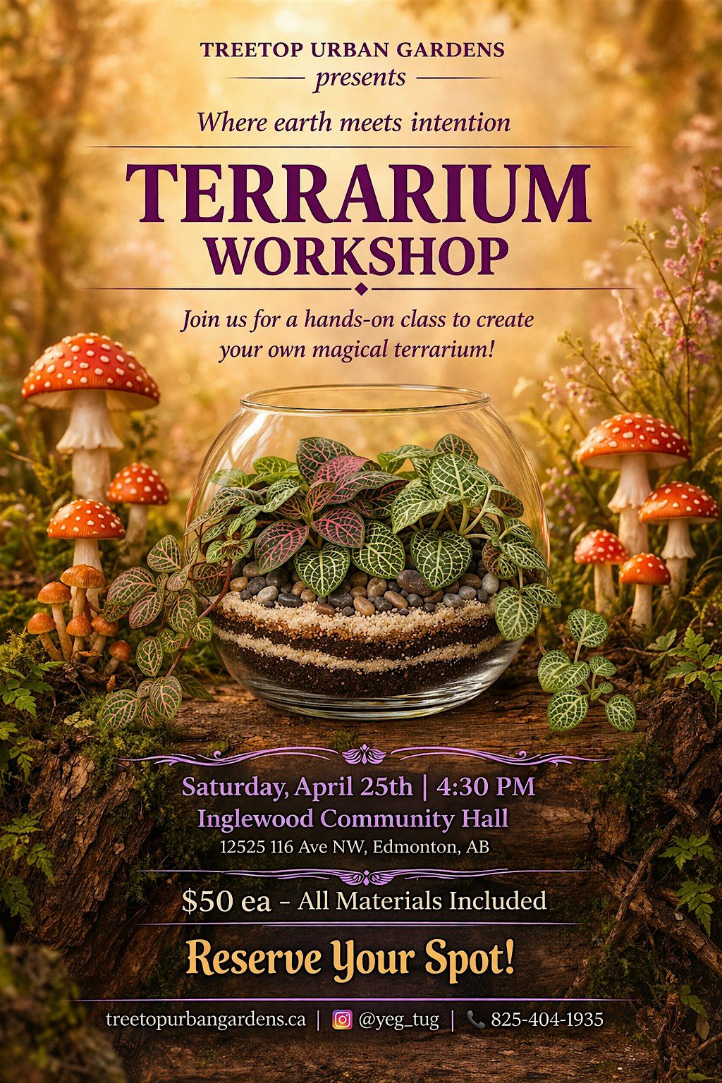 You'll learn how to layer, plant, and design a living arrangement that's easy to care for. You'll be guided step-by-step through the process. Each participant leaves with a finished terrarium and the knowledge to keep it thriving.