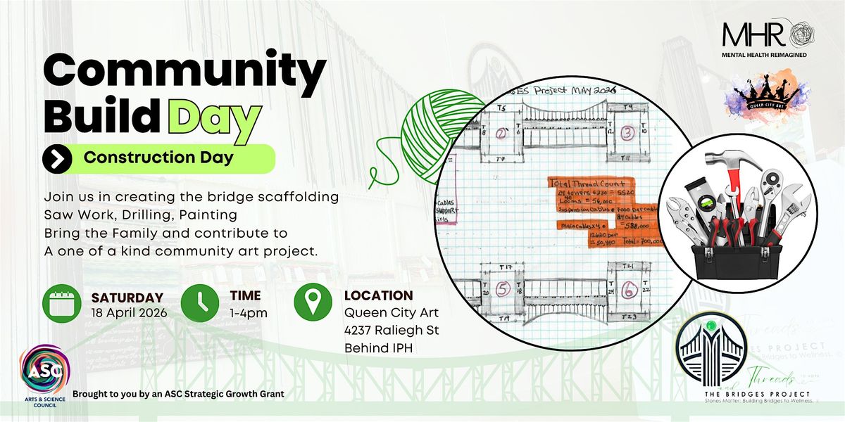 This is our official Builder Day for The Bridge from Illness to Wellness—a large-scale, interactive installation opening this May at Queen City Art for Mental Health Awareness Month.