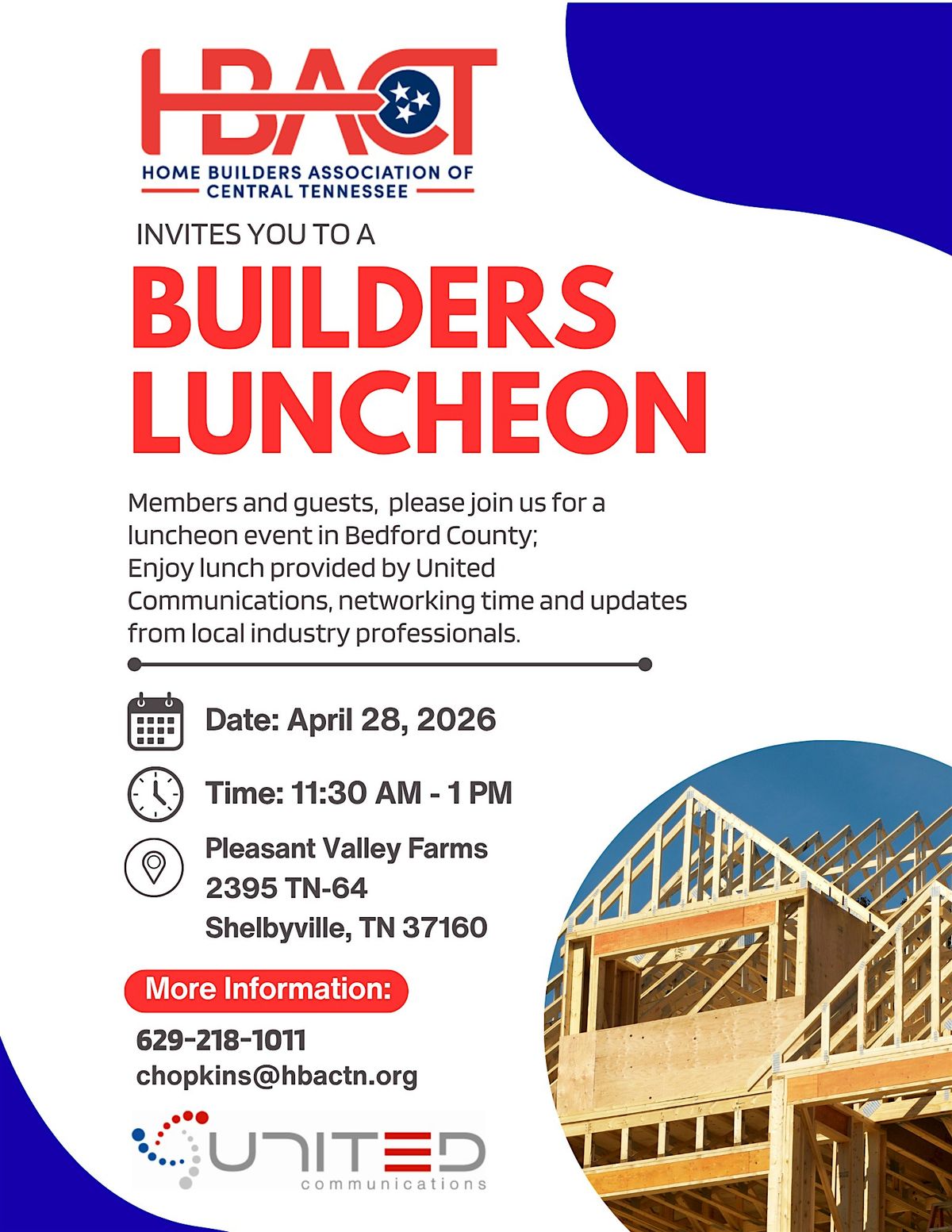 Enjoy lunch provided by United Communications, networking time and updates from area planning professionals.