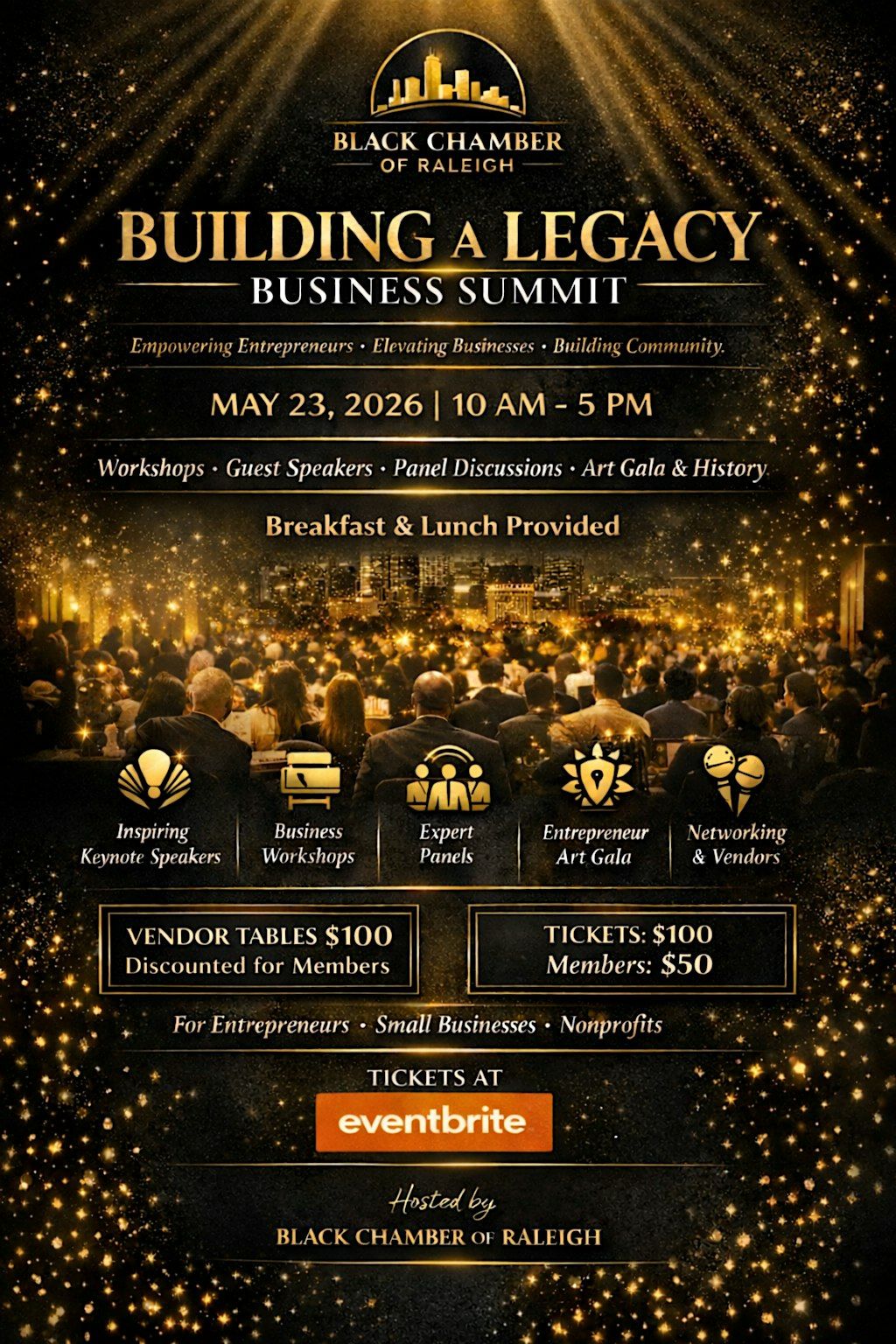 Step into a powerful day of growth, connection, and opportunity at the Black Chamber of Raleigh’s “Building a Lasting Legacy” Business Summit on May 23rd from 10:00 AM – 5:00 PM at The Fresh Collective. This high-energy, one-day experience is designed for entrepreneurs, small business owners, and nonprofit leaders ready to elevate their impact and expand their network.