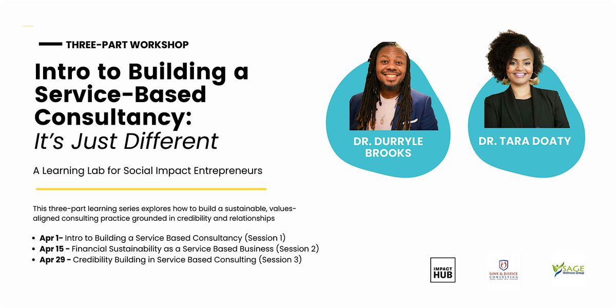Join Dr. Durryle Brooks of Love and Justice Consulting and Dr. Tara Doaty of Sage Wellness Group for a transparent and experience grounded learning lab that explores what it truly takes to build a thriving service based consultancy as a social impact entrepreneur. This session highlights the realities that many consultants discover only after years of trial and error. Together, Durryle and Tara will pull back the curtain on how to navigate trust based work, strengthen your reputation, grow your client pipeline, and build a consultancy that is both sustainable and aligned with your values.