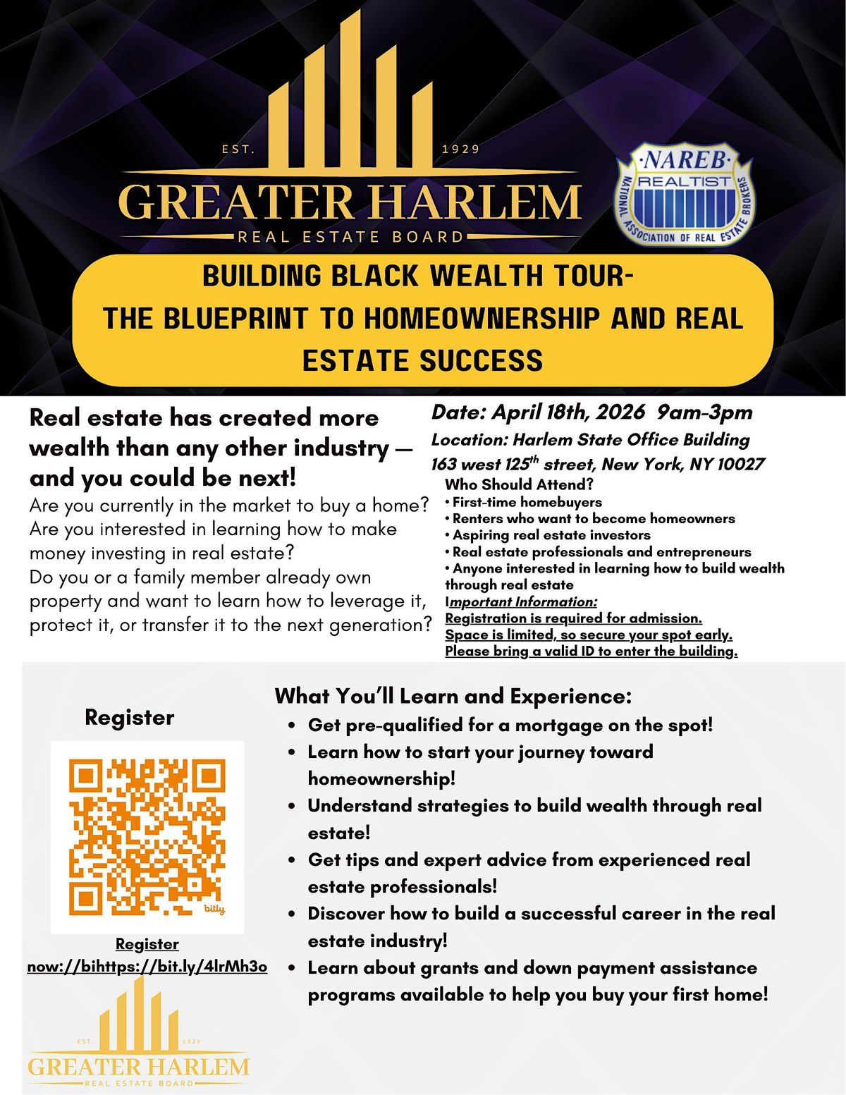 Real estate continues to be one of the most powerful tools for creating financial stability and generational wealth. This event is designed to ensure our communities have access to the information, strategies, and opportunities needed to participate in that growth.