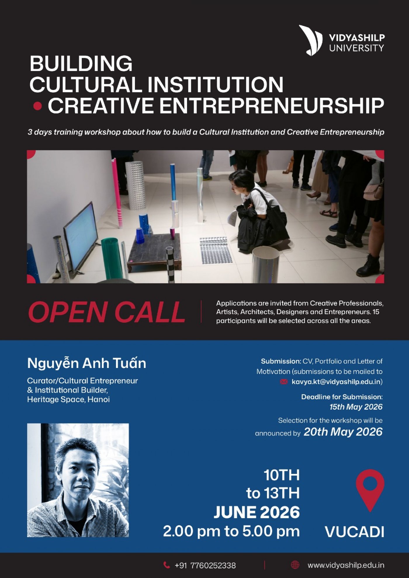 This workshop offers rare, direct engagement with Nguyễn Anh Tuấn, Artistic Director of Heritage Space (Hanoi), whose work spans major international collaborations including the Goethe-Institut, British Council, and Haus der Kulturen der Welt (Berlin).