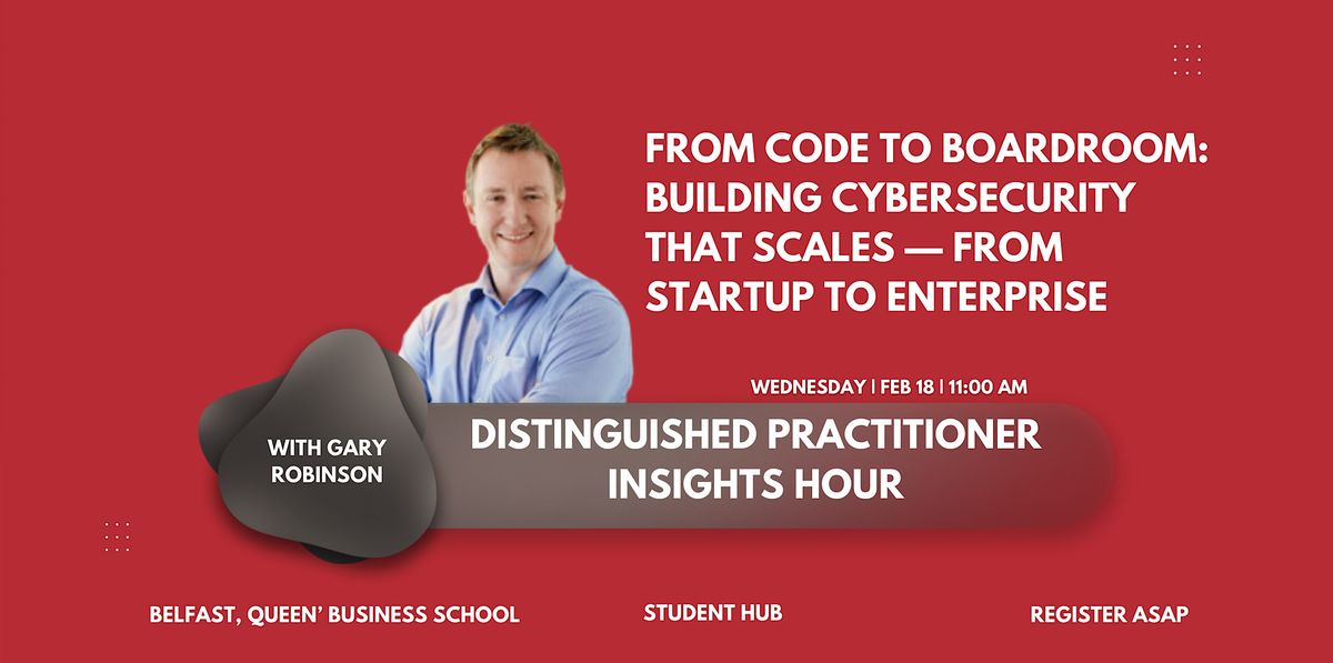 Cybersecurity success depends not only on strong technical architecture, but also on leadership, culture, incentives, and decision-making. Many organisations invest heavily in tools and frameworks, yet still struggle to translate these investments into resilient, scalable security programs that influence everyday behaviour. In this one-hour, in-person session at Queen’s Business School, Student Hub Building (Ground Floor, Room QBS/0G/039A, 185 Stranmillis Road, Belfast, BT9 5EE), Gary Robinson, Head of Information Security & Compliance at Slice and former founder and CEO of Uleska, will reflect on key moments from his career building and leading security functions across startups, scale-ups, and large enterprises. Alongside practical insights into what makes cybersecurity programs work, Gary will share lessons learned, common pitfalls, and perspectives on the skills and mindsets that matter most for students preparing for careers in cybersecurity, software engineering, and technology leadership.