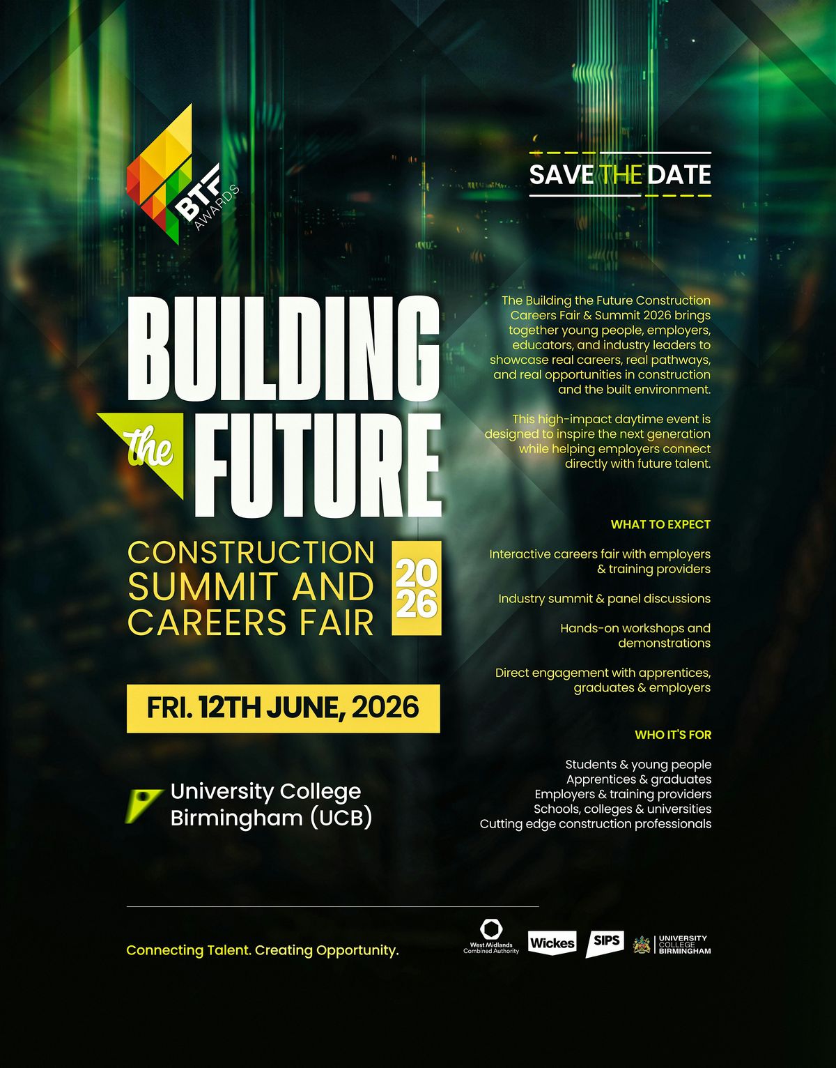 Construction Summit & Careers Fair 2026: 200 students, 12 schools, industry leaders shaping West Midlands 2035 together.About this Event