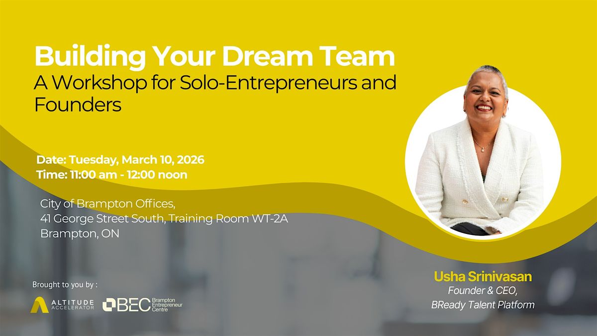 Usha Srinivasan is the Founder and CEO of BRready Talent Platform. This workshop is grounded in Usha's experience building three startups in foodtech, main street businesses, entertainment, and now a not-for-profit. She has also coached and mentored hundreds of startups in the Ontario community at MaRS, Elevate and Brampton Venture Zone.