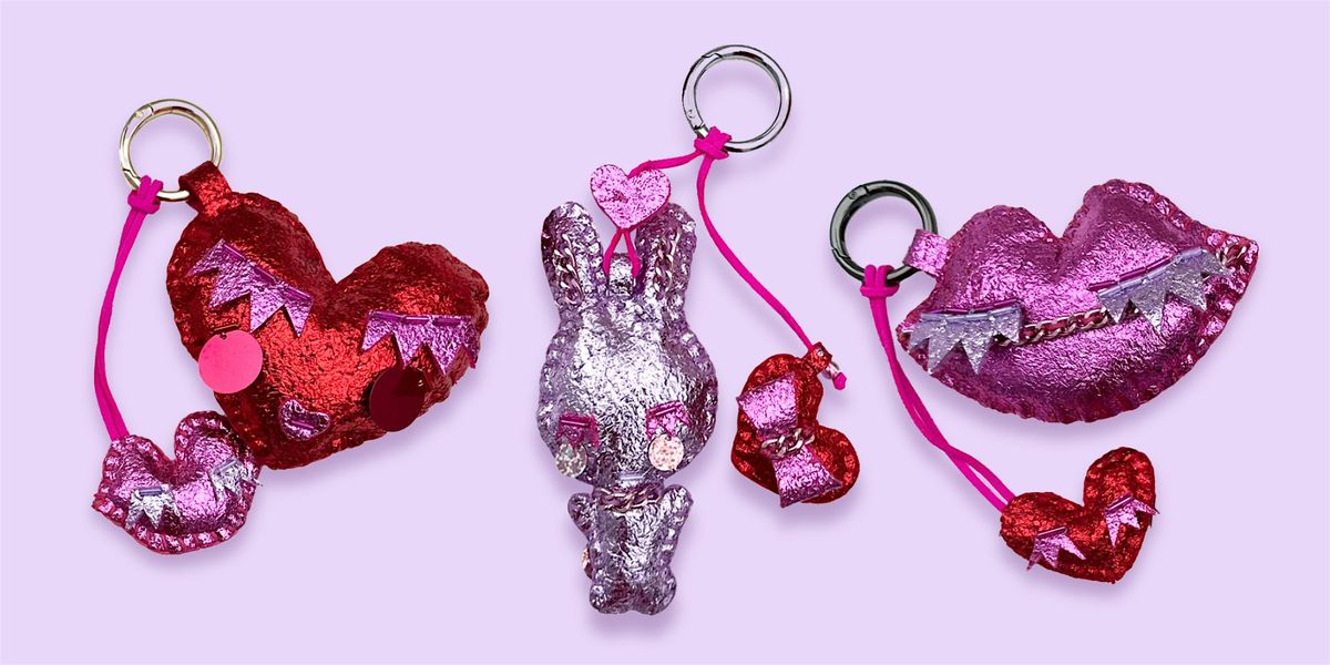 Built by Court is a hands on textile workshop rooted in designer thinking and playful object making. Each class explores hand stitching, beading, and soft construction using exclusive hand foiled felt to create bold, eye catching charms that feel equal parts fashion and art. Inspired by the idea of luxury meeting pop culture, these one of a kind designs are original concepts developed by Court and taught in an intimate studio setting, guiding participants through the process of turning materials into expressive, finished pieces that feel alive.