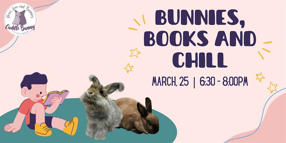 Hope you'll join our adorable bunch of free roaming bunnies while reading a good book, chillin' with friends, and munching some yummy snacks, including vegan options. BYOB in a spill-proof container, please.
