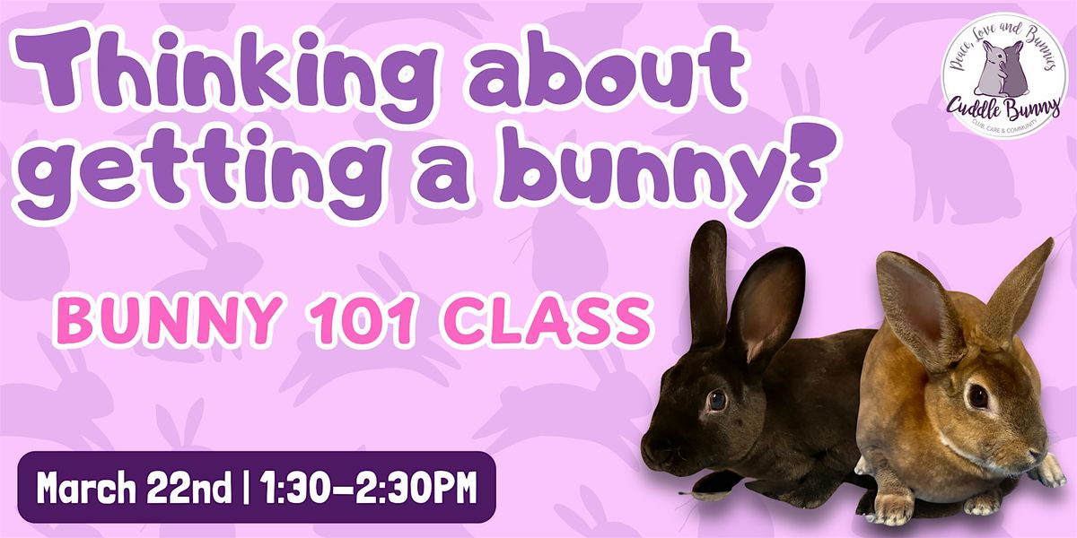 This Bunny 101 Class: Basics of Bunny Care is geared toward those who are thinking about getting a bunny, but are new to the world of bunnies. We'll be discussing the differences between breeds and genders, important items to have on hand, the basics of bunny care, and much, much more!