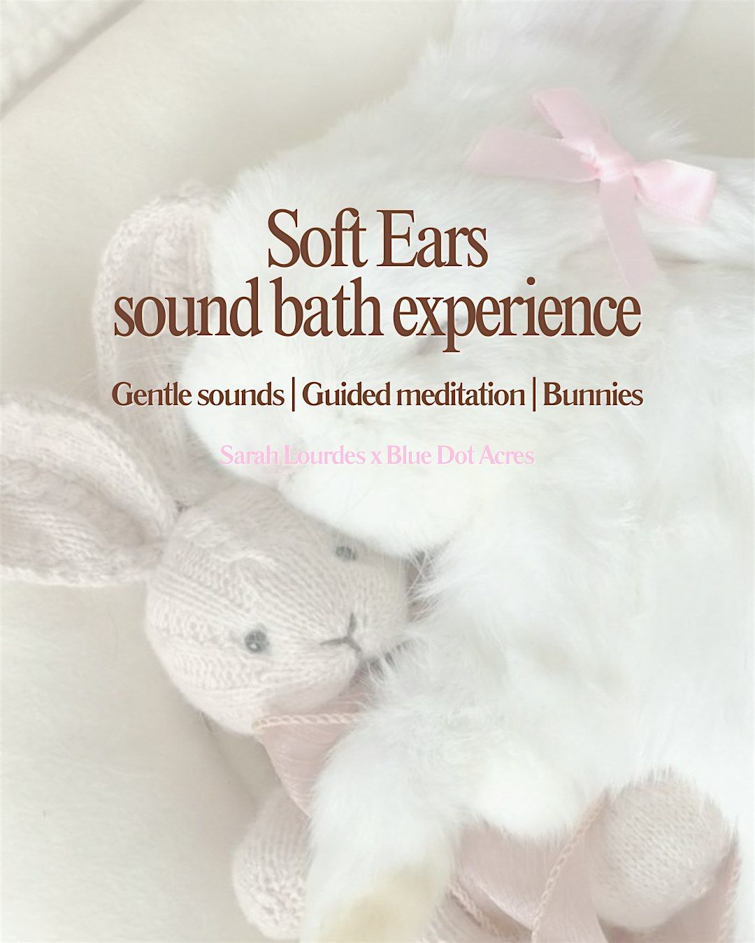 Because bunnies have very sensitive hearing, this experience will feature very gentle sounds paired with a calming, soothing guided meditation. The intention is to create a peaceful environment that feels safe and nourishing for both humans and animals.