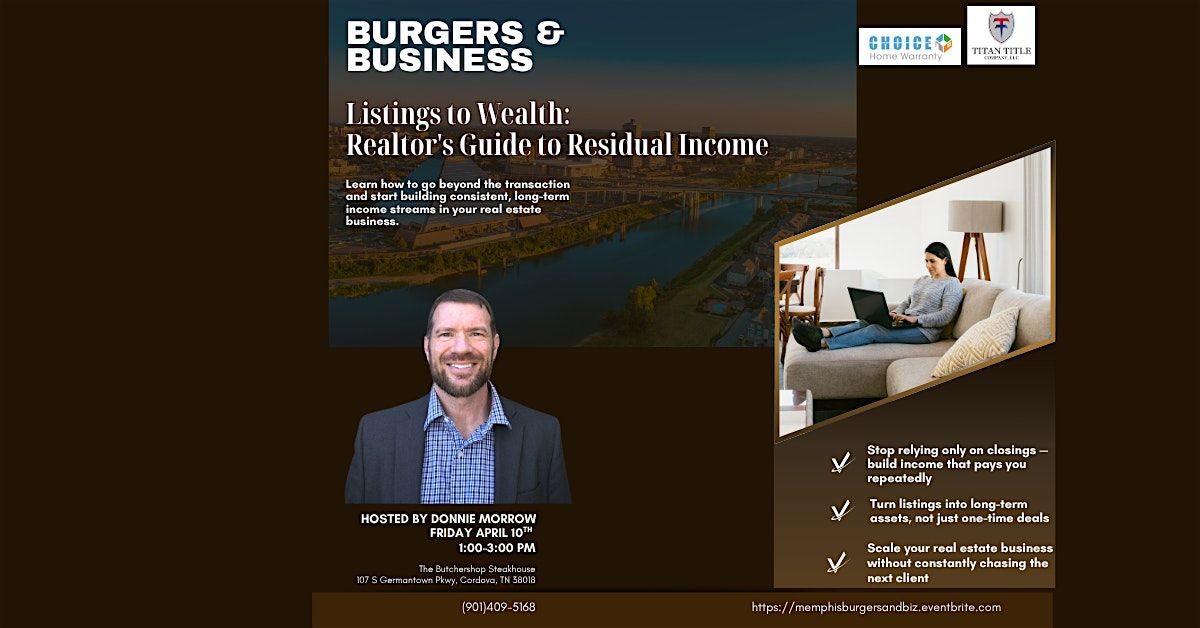 Join us for another powerful Burgers & Business event hosted by Donnie Morrow, designed to help real estate professionals grow beyond the transaction and start building long-term wealth.