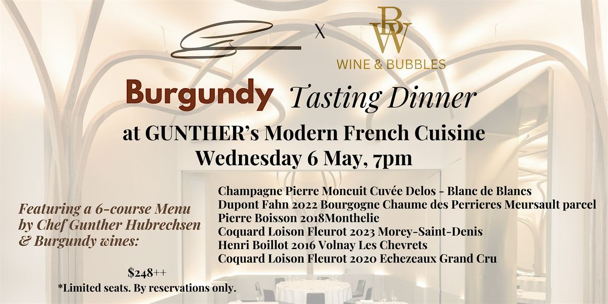 Join Wine & Bubbles for an Amazing night and Burgundy Tasting Dinner at Gunther's French Modern Cuisine.