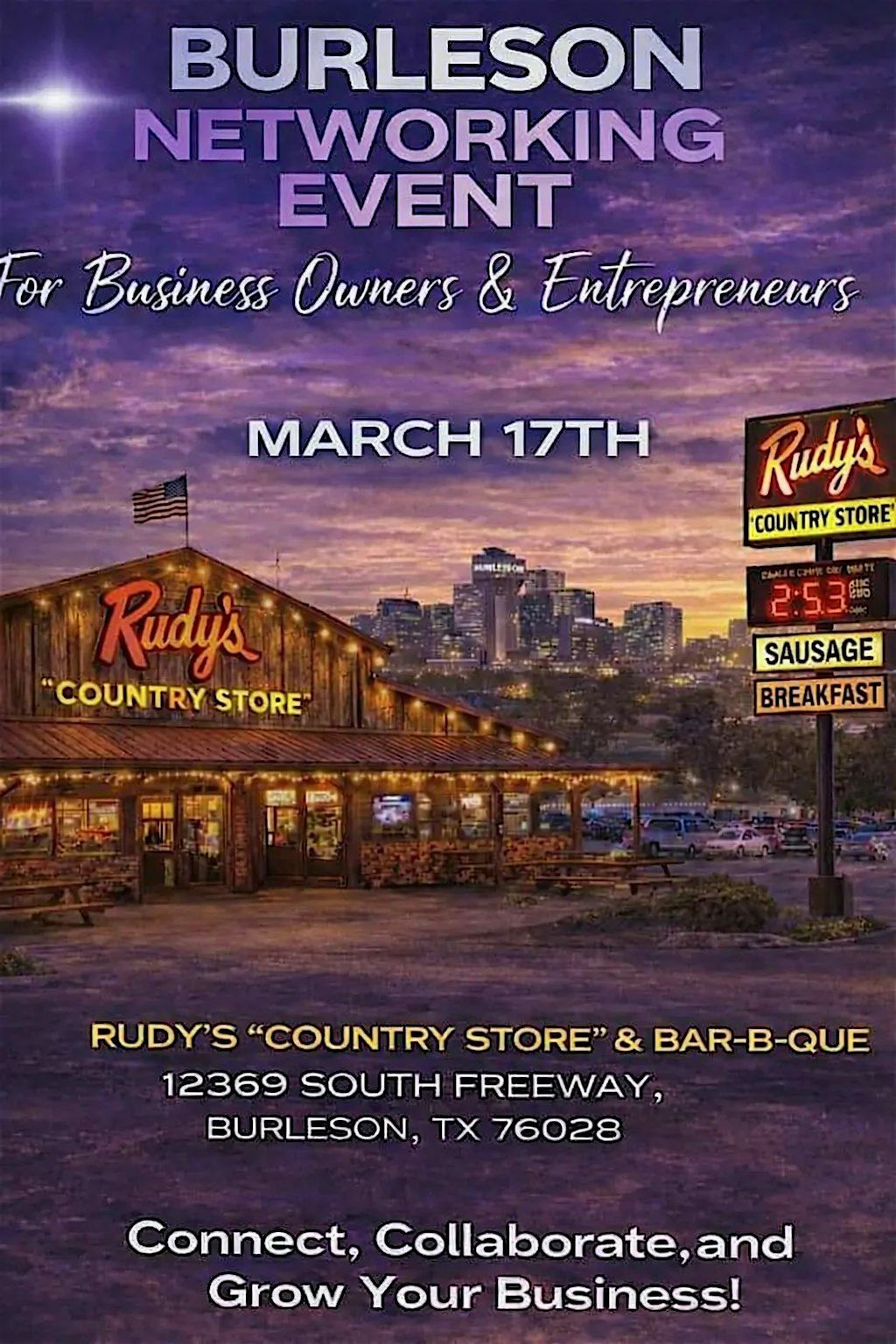 Come join us for an awesome in-person networking experience where local businesses get to shine! It's the perfect chance to connect, chat, and discover what Burleson has to offer. Whether you're looking to make new contacts or just check out some cool spotlights, this event is the place to be. Don't miss out on great conversations and exciting opportunities!