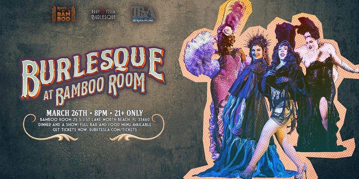 Welcome to the best kind of trouble you can get into on a Thursday night, Burlesque at Bamboo Room! Join us for a tantalizing revue, where artists of tease bring you vintage vibes with a rock & roll twist. Doors open at 6, so come early, grab a drink and a bite, and prepare to be seduced, dazzled, and mystified.