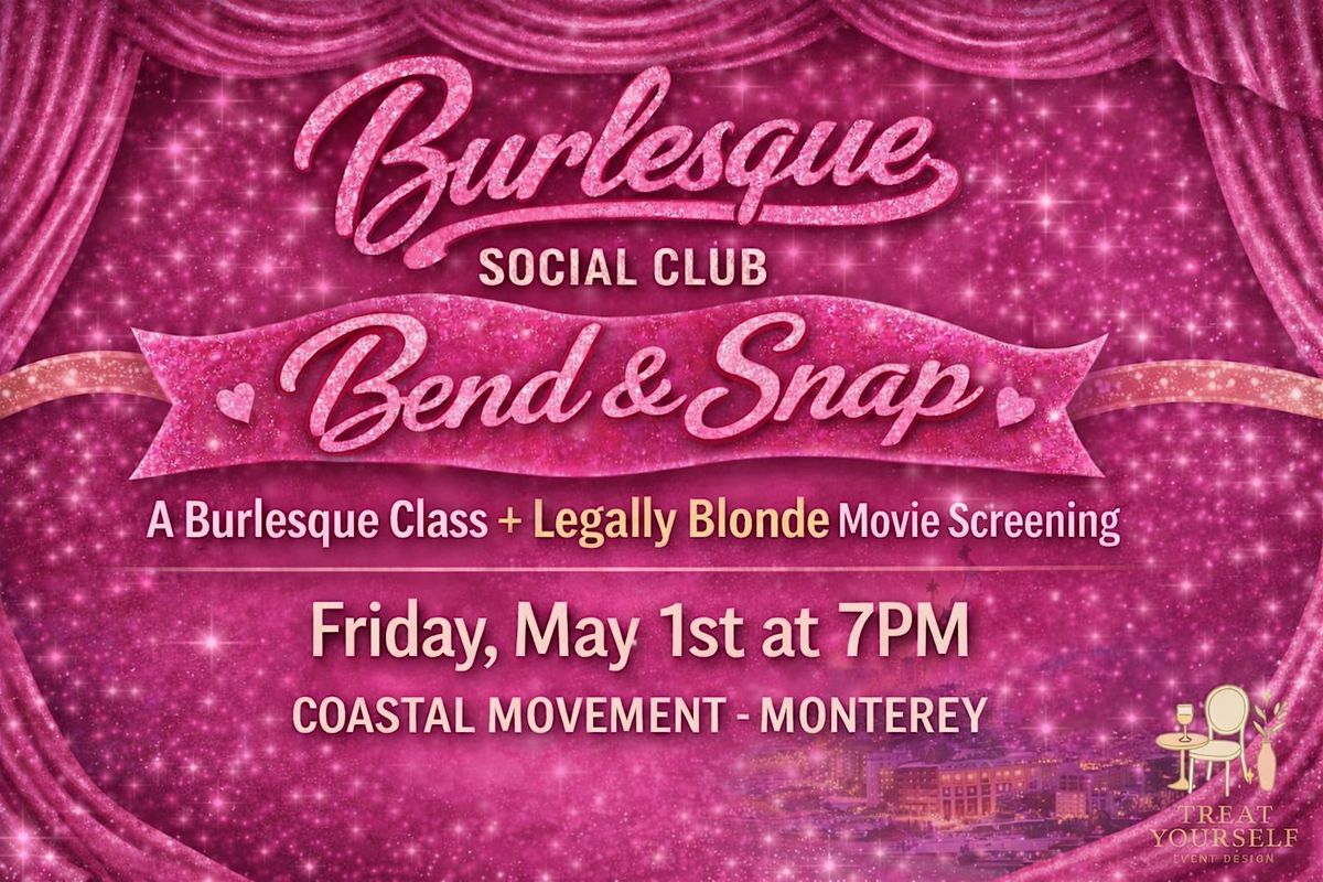 Bend & Snap Burlesque night: flirty class, pink crafts, social vibes & Legally Blonde screening. All levels welcome—come feel confident!About this Event