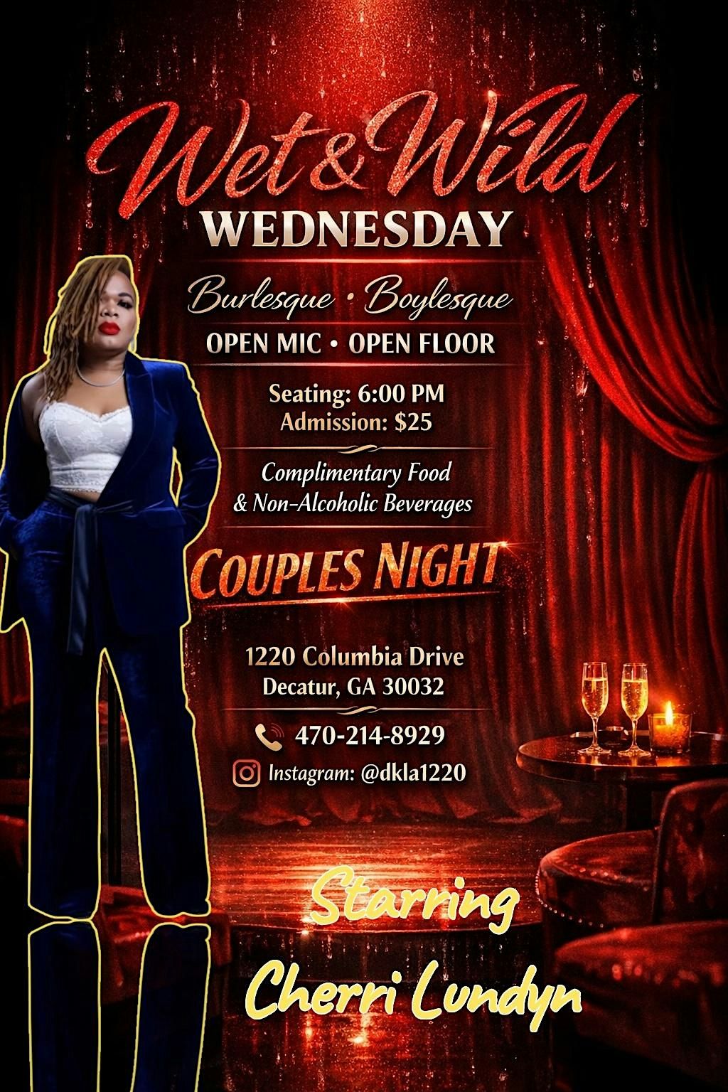 An intimate, high-energy night celebrating live performance, sensual movement, and creative expression in Decatur, Georgia. Featuring burles