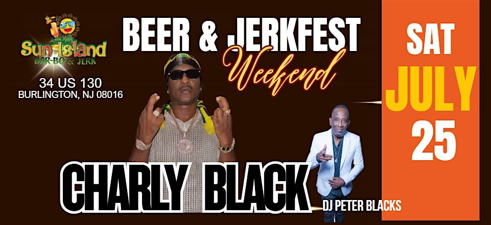Saturday July 25, 2026 Annual Beer & JerkFest in Burlington, NJ at Sun Island Supreme Restaurant & Bar. This year offers three major events for everyone to enjoy. Friday night features DJ Kway for a Soca experience, Saturday features the international Reggae Artist, Charly Black all the way from Jamaica and Sunday is for rejuvenation, Brunch at 12p m with DJ Titanium for a Souls Sunday treat.